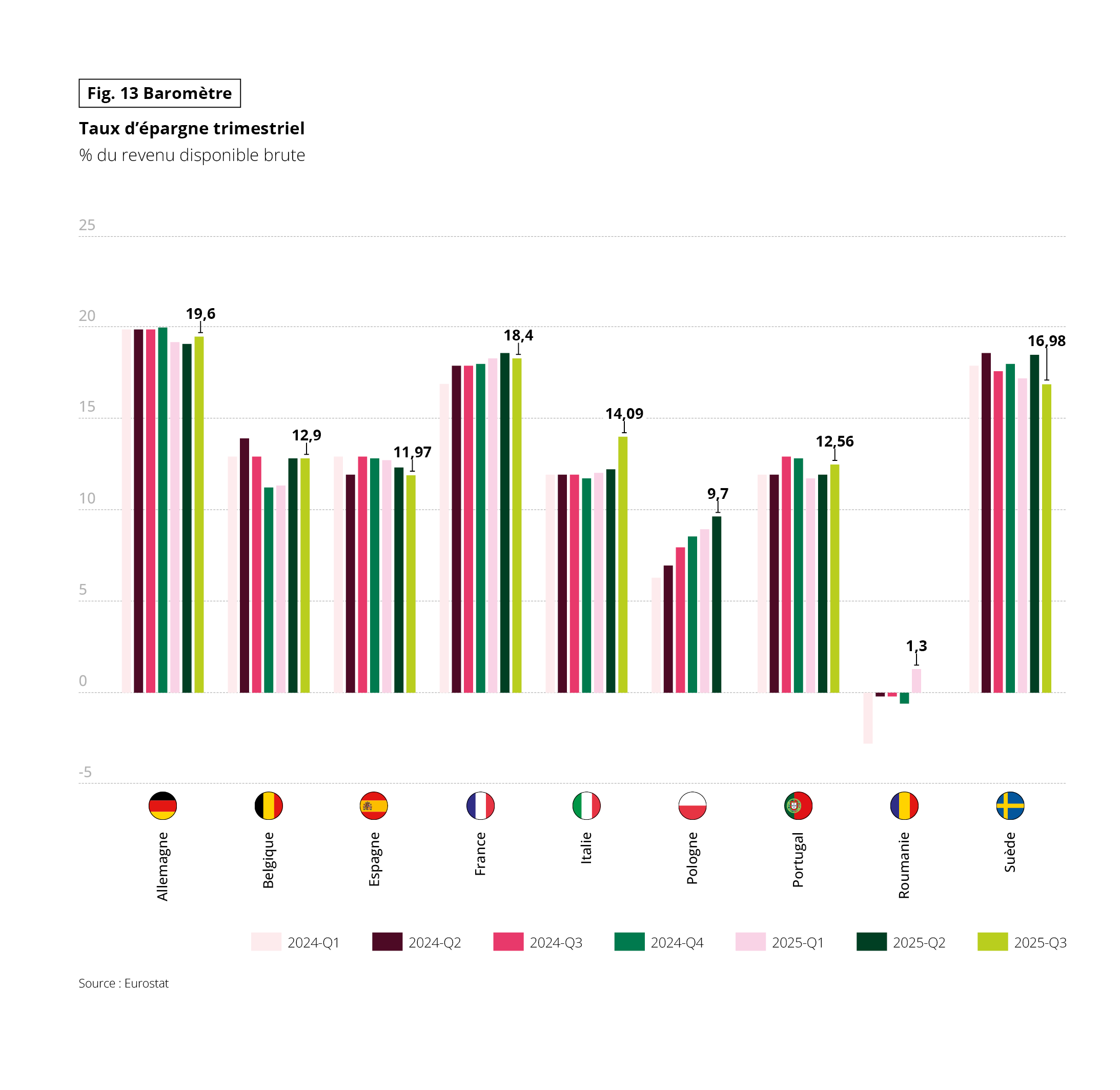 Fig 13 – Taux d’épargne trimestriel par pays