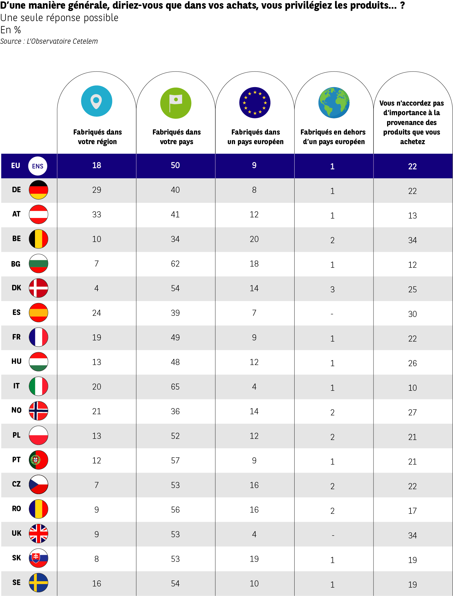 Un sur deux choisira d’accorder sa préférence à un produit dans son pays, contre seulement 18 % dans sa région.