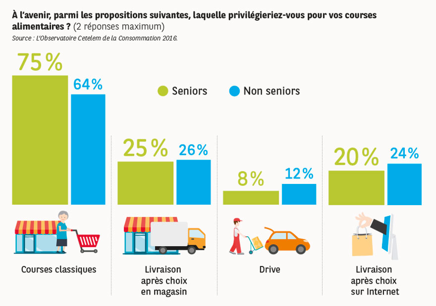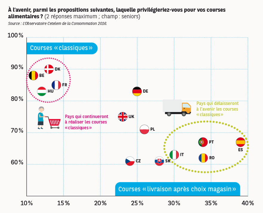 À l’avenir, 75 % des seniors devraient privilégier les courses dites « classiques » en magasin (contre 64 % des moins de 50 ans). En République tchèque et en Slovaquie, les seniors seraient cependant davantage prêts à rompre avec ce schéma traditionnel.