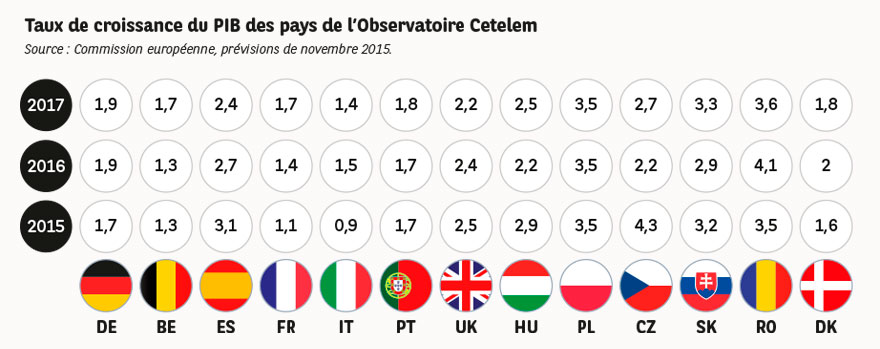Les Européens accompagnent cette reprise en maintenant à la hausse leur consommation (+1,8 % en 2015). Signe que la confiance est au rendez-vous, la perception qu’ils ont de la situation générale de leur pays s’améliore pour la troisième année consécutive après plusieurs années de baisse post-crise. Seul pays européen qui voit sa note baisser significativement, l’Allemagne perd 0,7 point.