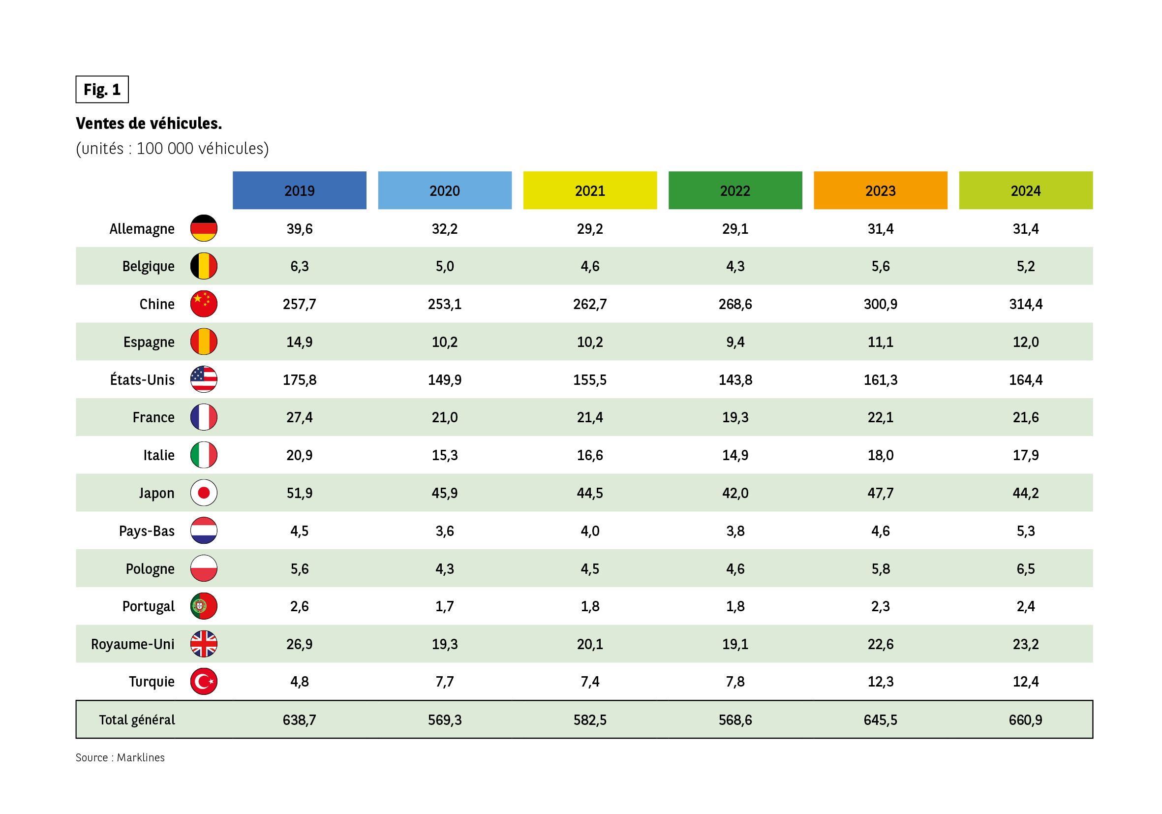 Certes, 2023 et 2024 ont donné lieu à une relative reprise des ventes, mais cette reprise est loin d’être partout partagée. Pour deux leaders mondiaux qui reprennent des couleurs, de nombreux autres pays, particulièrement européens, voient leurs marchés rester atones.