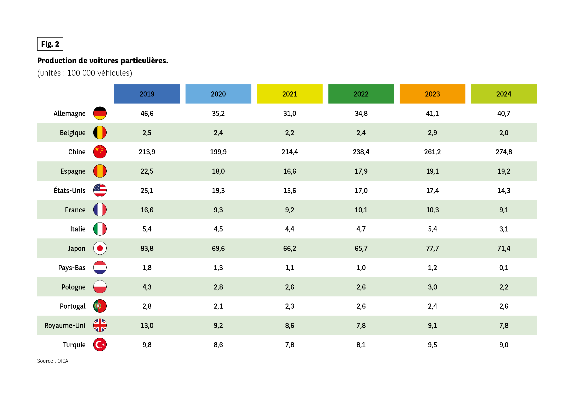 Fig 2 – Production de voitures particulières 2019-2024