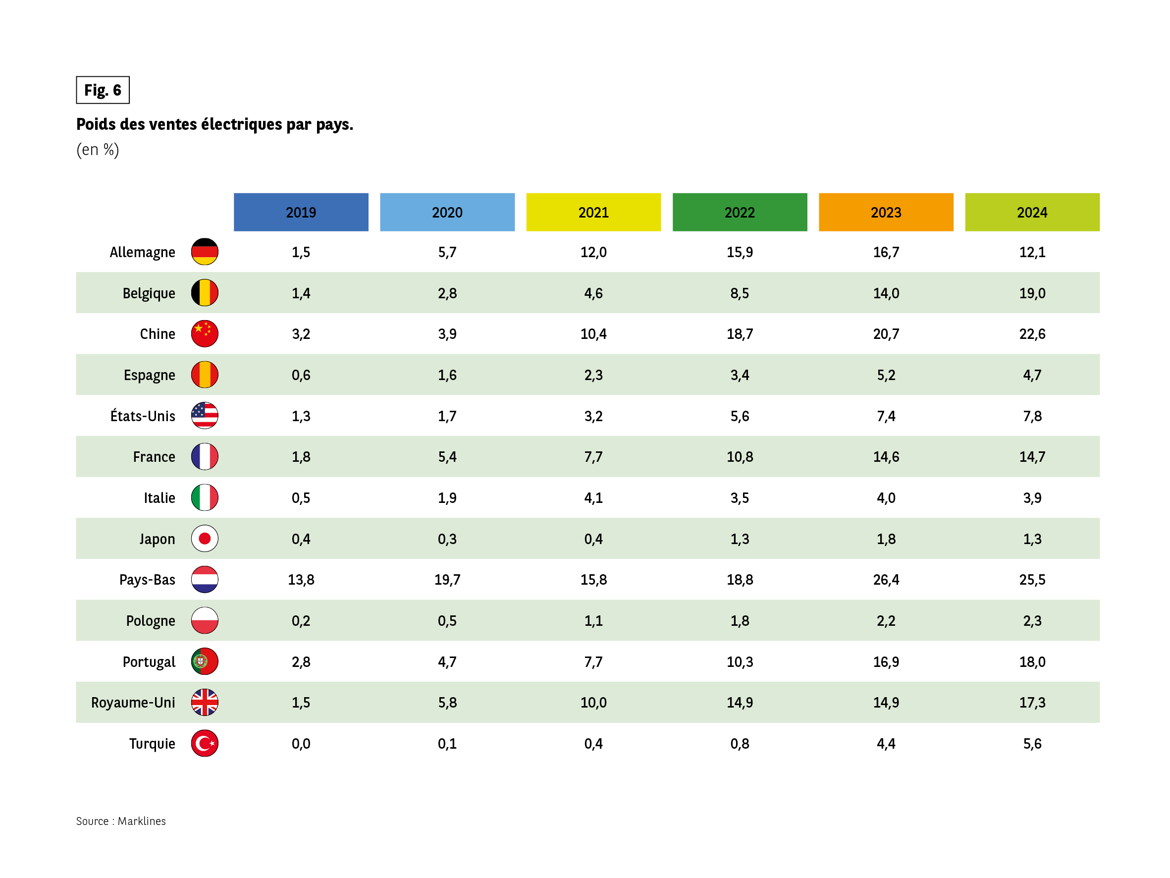 Fig 6 – Part des ventes électriques par pays