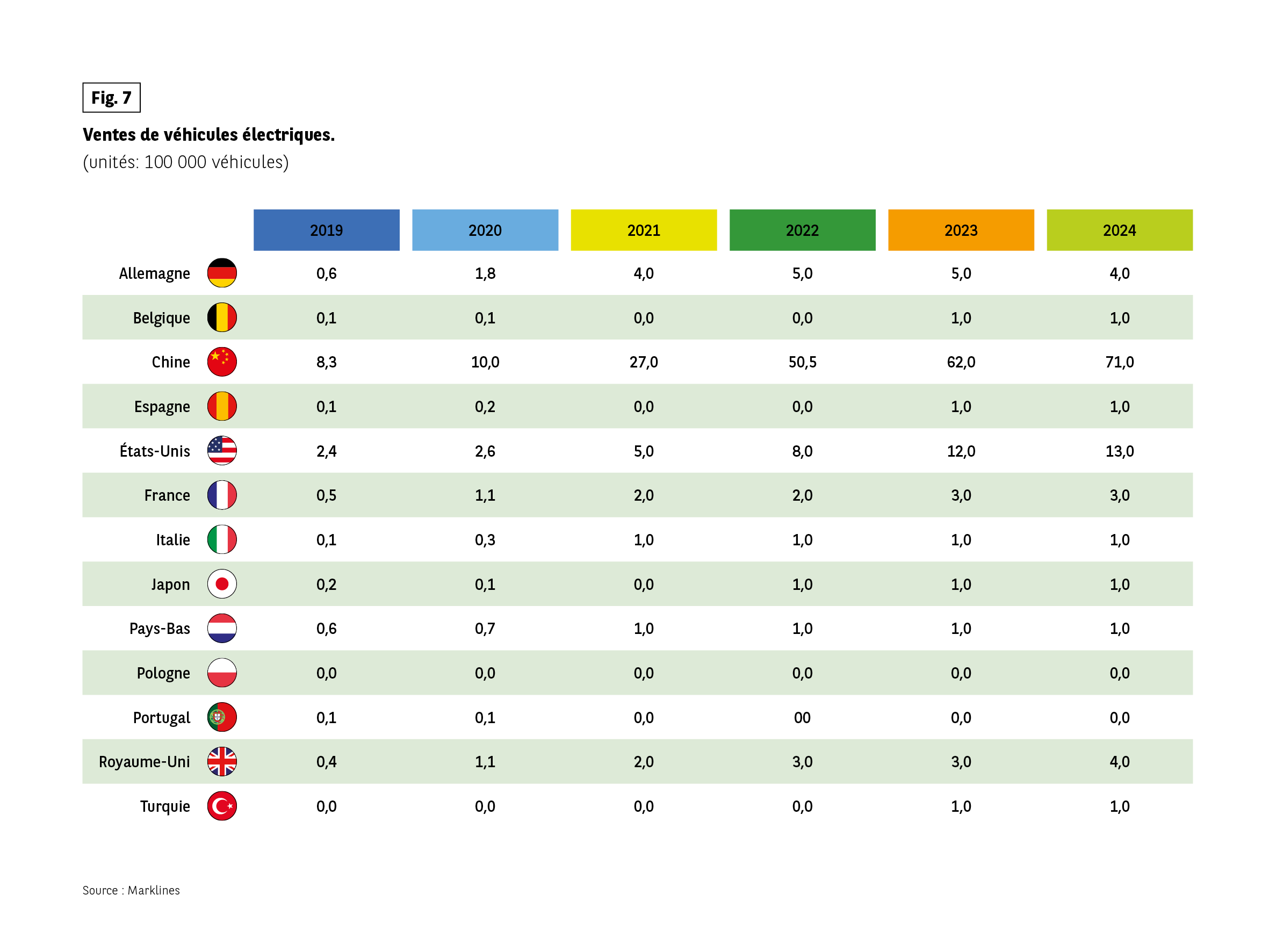 Fig 7 – Ventes de véhicules électriques 2019-2024