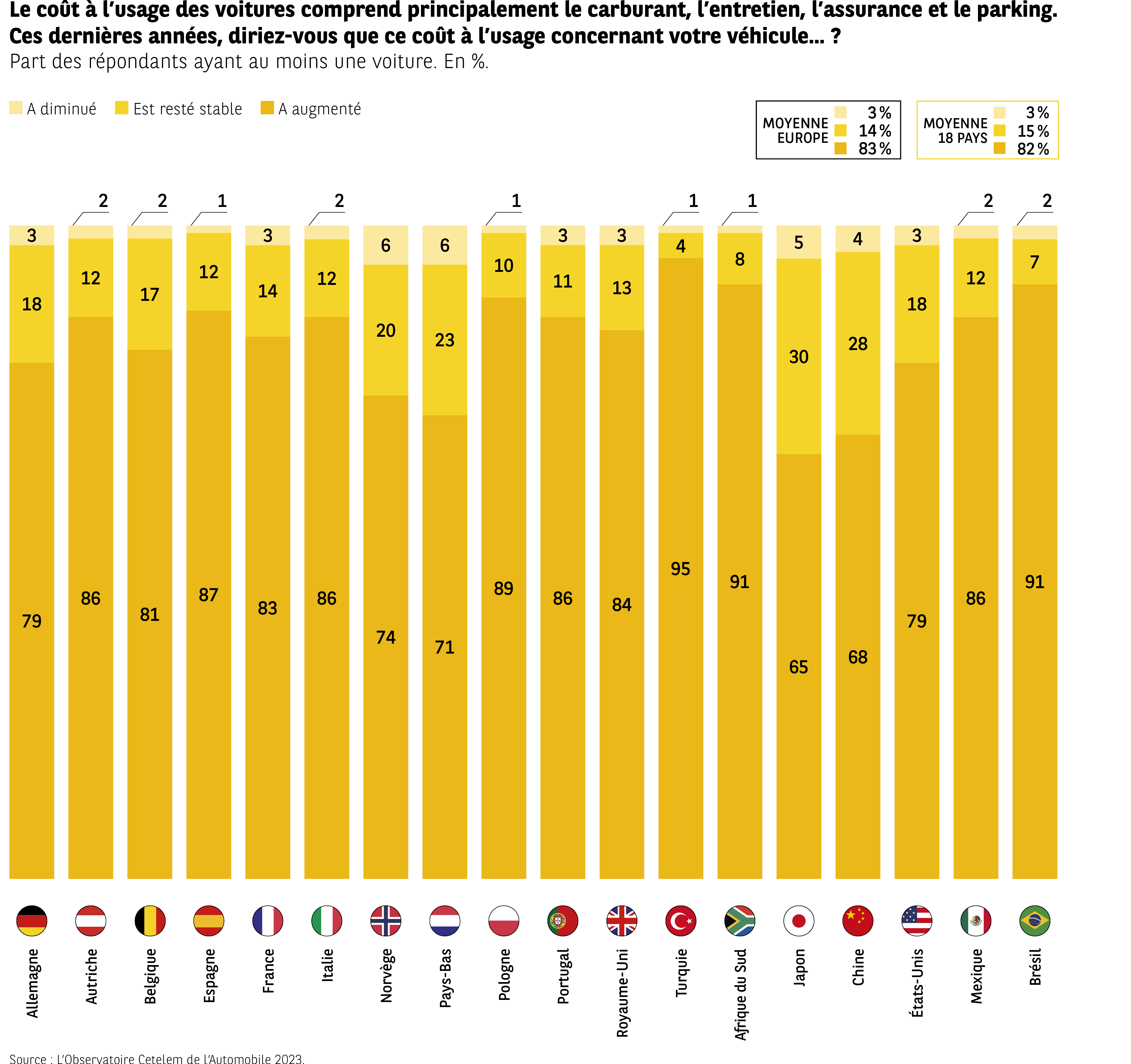 – Dans presque tous les pays, la majorité estime que le coût a augmenté, souvent à plus de 80 %.