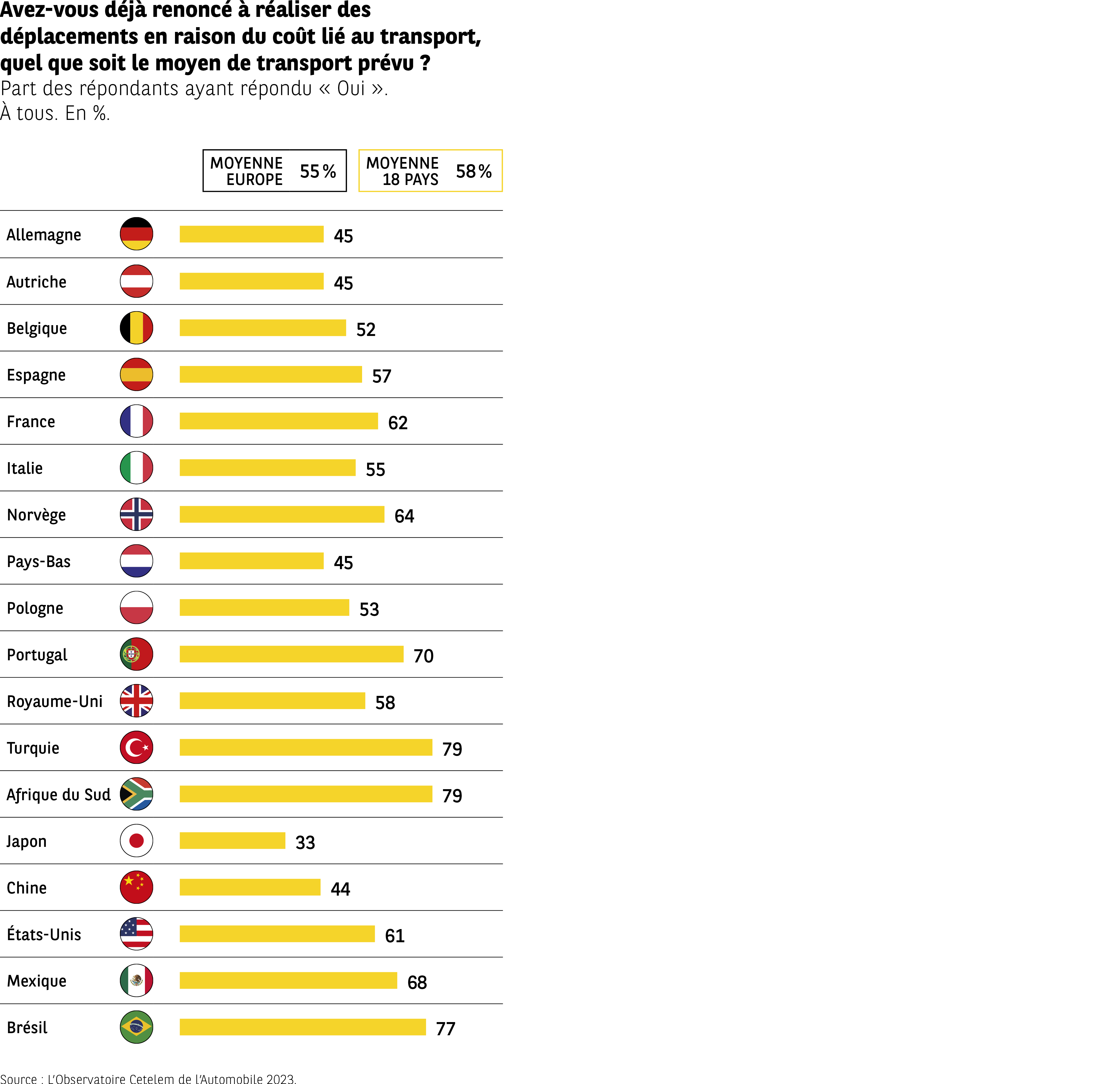 – Forte variation entre pays dans la perception du coût du carburant.