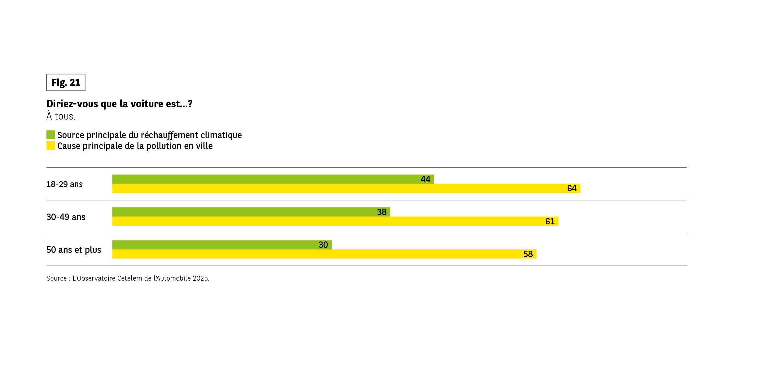 Derrière ces résultats, il faut sans doute voir la plus grande maturité environnementale des jeunes, plus informés que leurs aînés et pour lesquels cette question engage leur avenir (Fig. 21).