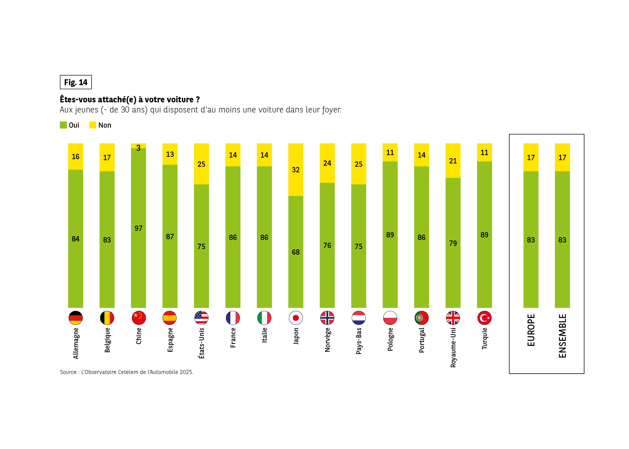 Fig 14 – Attachement des jeunes à leur voiture par pays