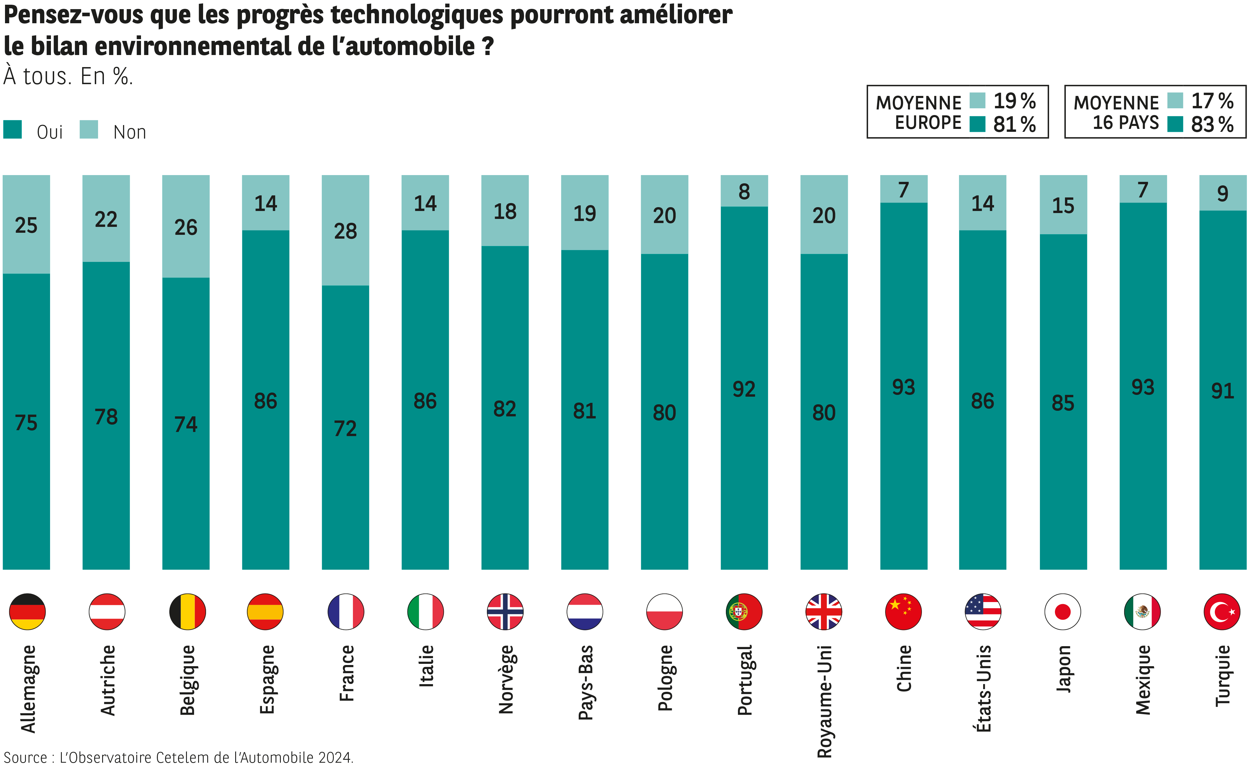 16 pays : 83 % oui / 17 % non