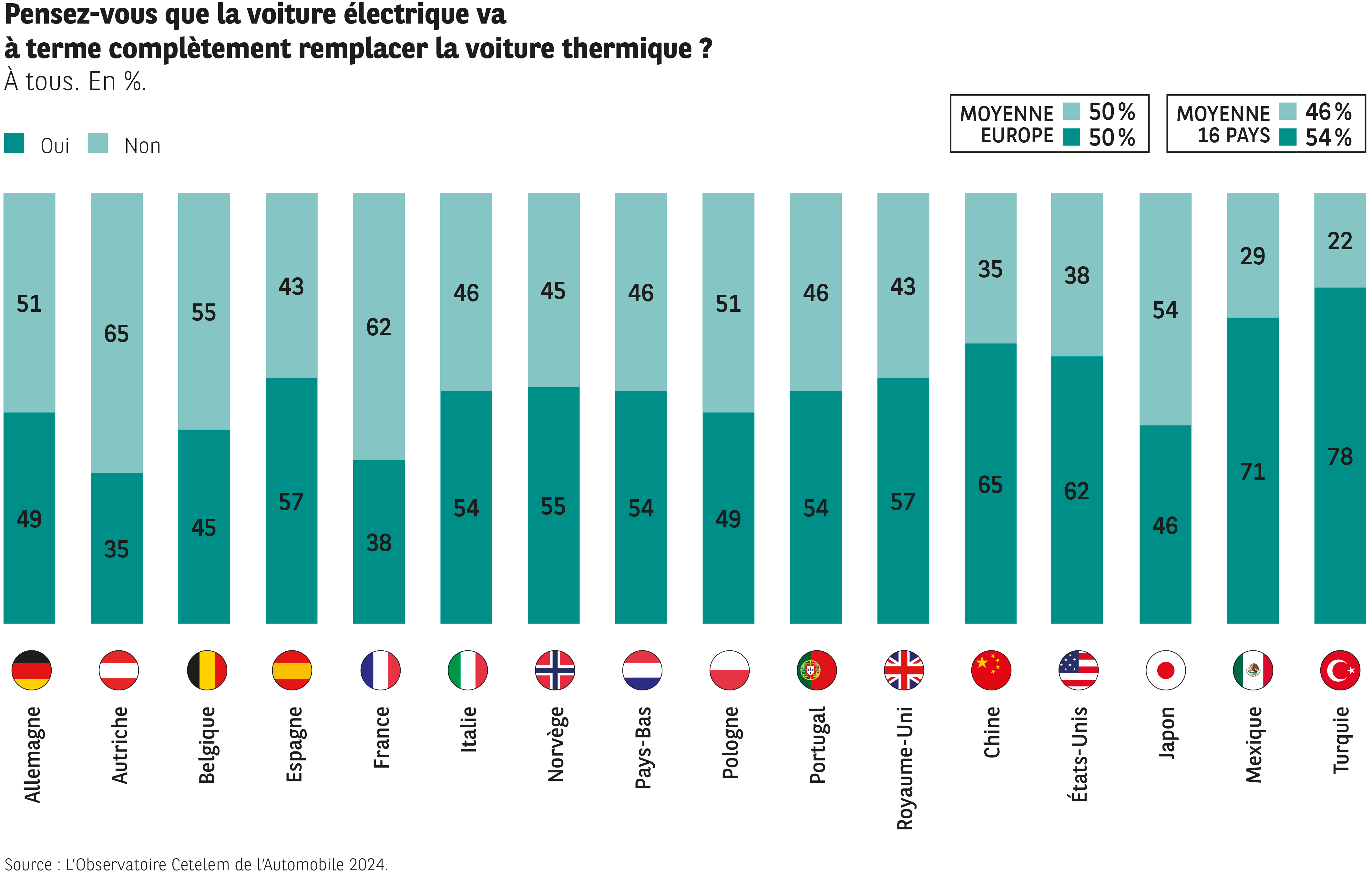 C’est naturellement dans les deux pays où la voiture électrique est la plus présente que cette assertion rencontre le plus grand nombre de suffrages :