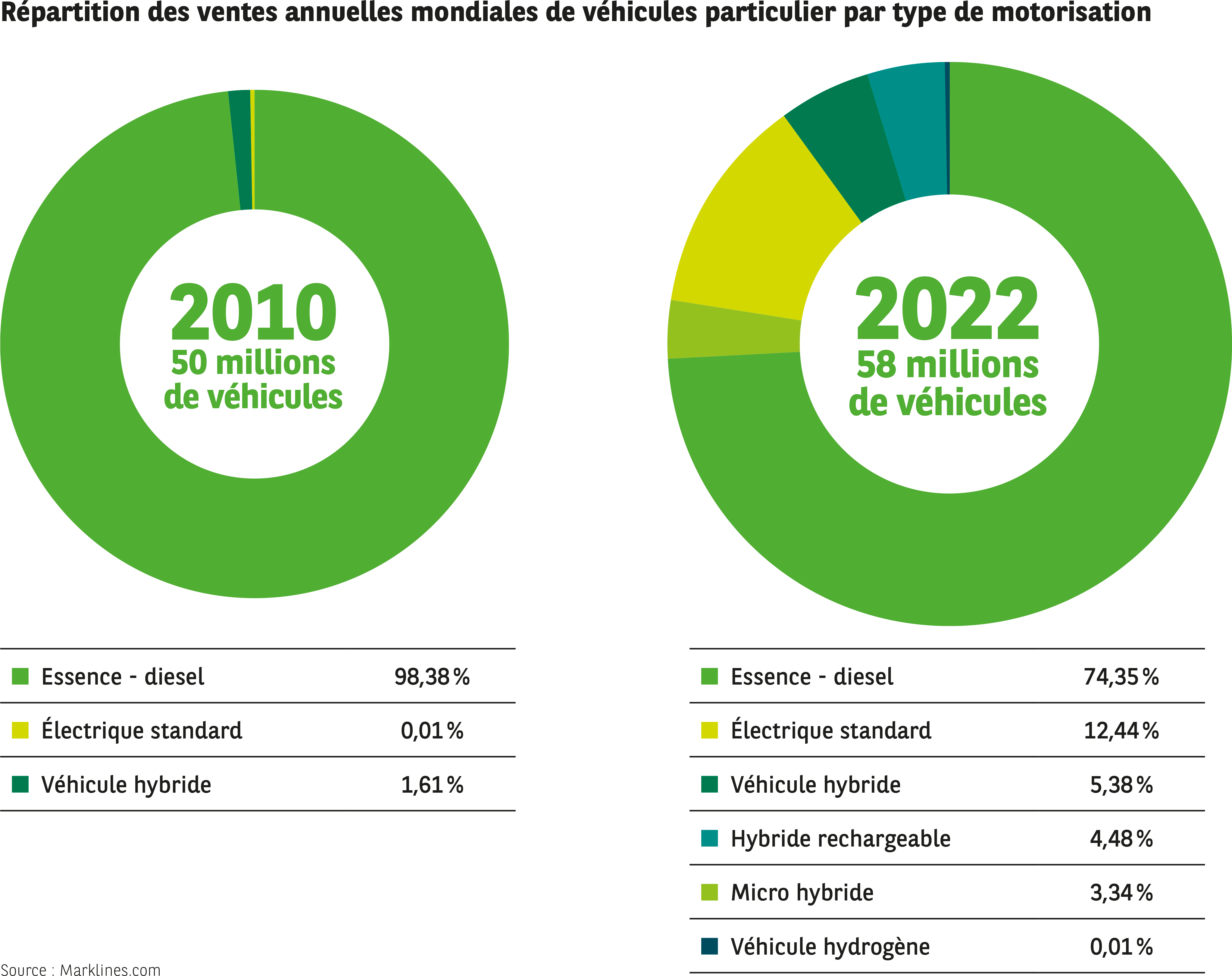 Fig 6 – Évolution de la répartition mondiale des ventes automobiles par motorisation (2010 vs 2022)