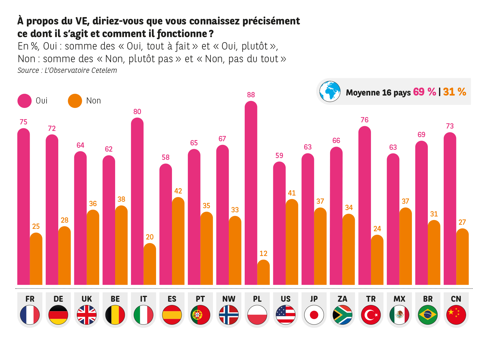 69 % déclarent connaître le VE et savoir comment il fonctionne.