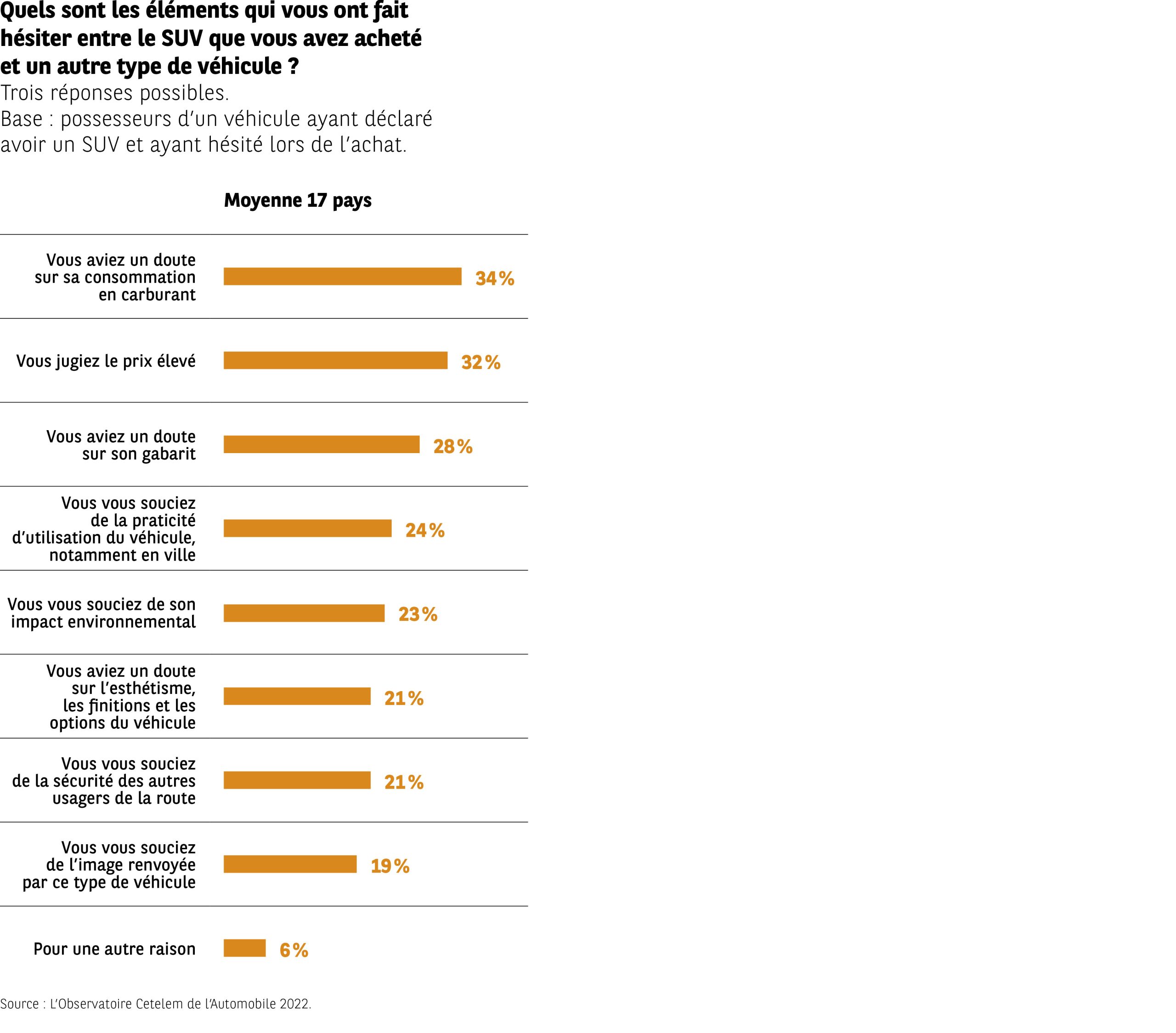 Enseignement principal : les principales hésitations concernent la consommation, le prix et le gabarit.