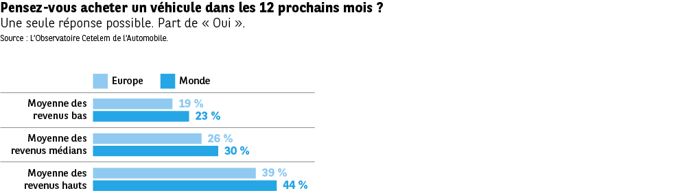 La segmentation en termes de revenus fait apparaître des ménages aisés plus nombreux que la moyenne à souhaiter acheter un nouveau véhicule (Fig. 4).