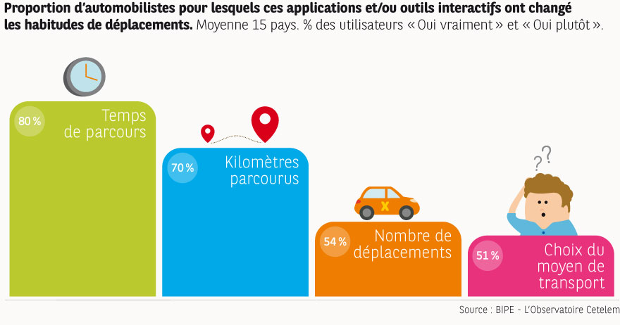 Les applications de navigation, disponibles dans le véhicule et/ou via le smartphone ou Internet en général, impactent fortement la mobilité des individus.