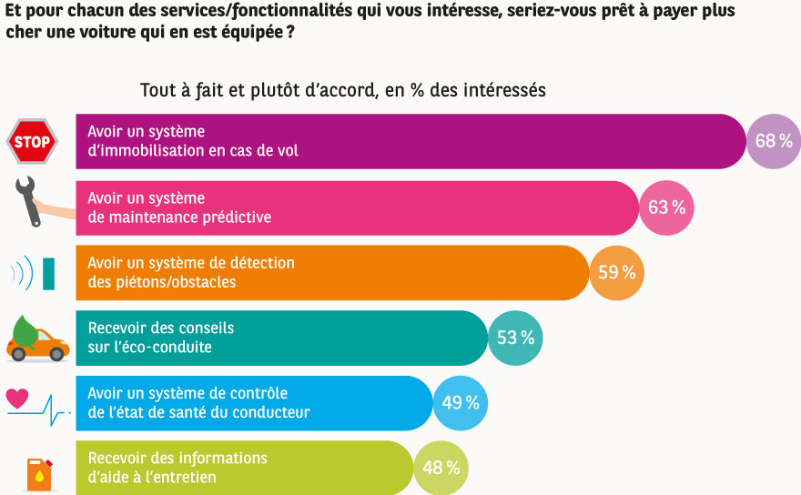 Les automobilistes sont nombreux à envisager payer plus cher pour bénéficier de fonctionnalités connectées remplissant les critères de sécurité et d’optimisation de leur budget.